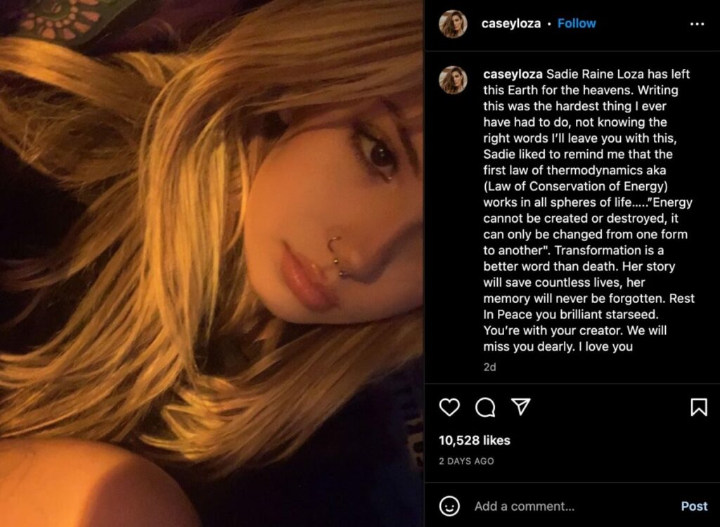 “Transformation is better than passing away. Many lives will be saved by her narrative. Her legacy will endure eternities. Starseed, may you rest in peace.